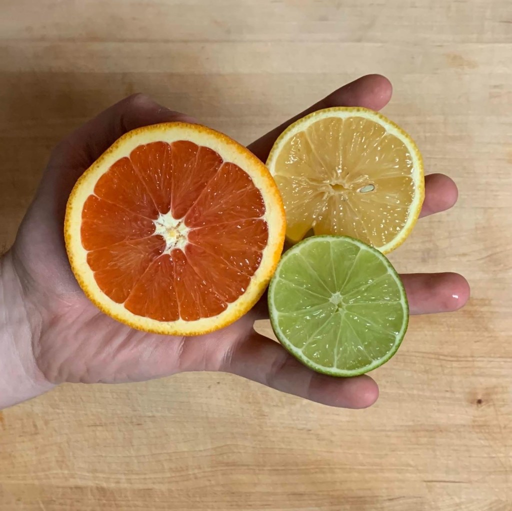1. Fill a cocktail shaker with Ice add 2 Tablespoons of juice from a Lime, Lemon, and Orange.
